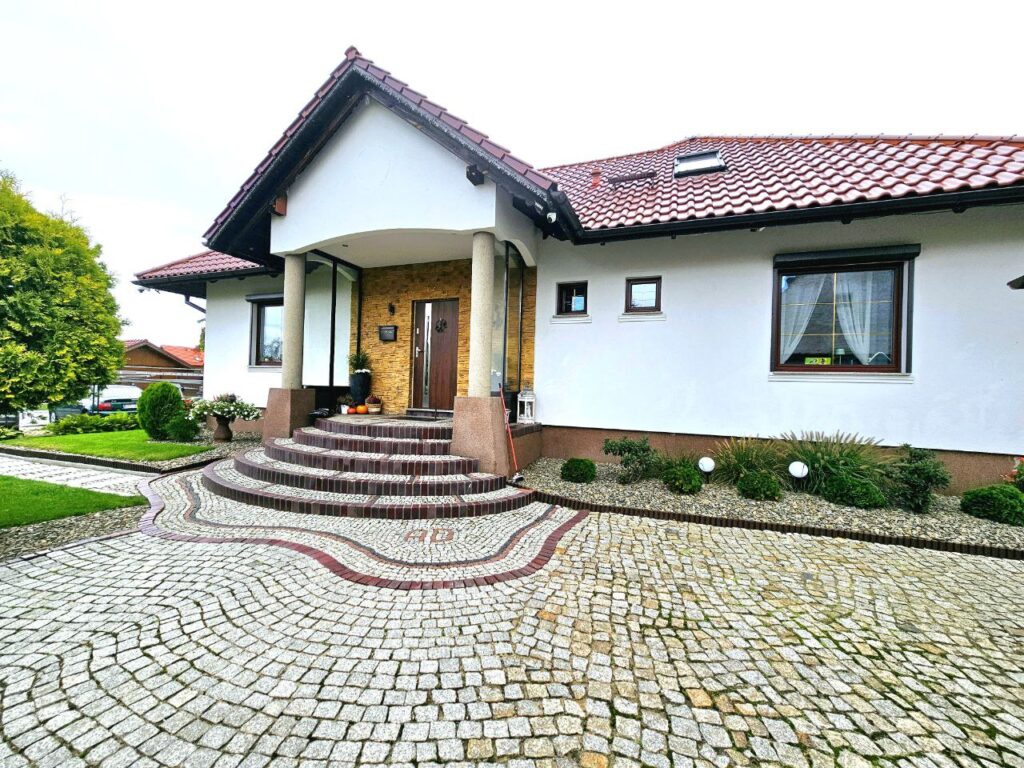Posadowiony na pięknie zagospodarowanej działce o powierzchni 1200m2.